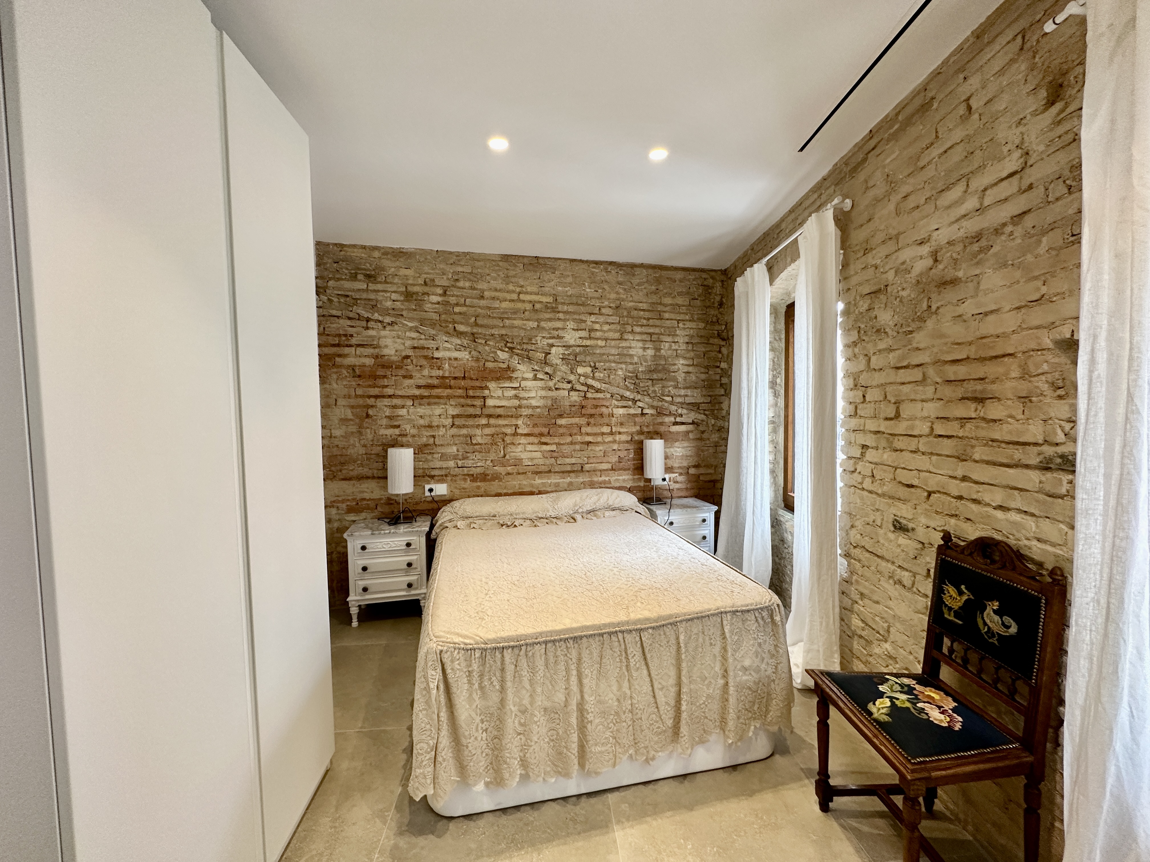 Al acceder a la vivienda en la planta baja nos encontramos con un gran salón-comedor donde se han respetado los materiales originales de la casa, vigas en techo de mobila, ventanas restauradas etc. , dando paso a una excelente cocina totalmente equipada. La planta baja disfruta de un bonito patio central que bordea ambas estancias y que le aporta mucho encanto a toda la planta, con los muros de piedra y amplios ventanales que dan mucha claridad. En esta planta se encuentra un aseo de cortesía.