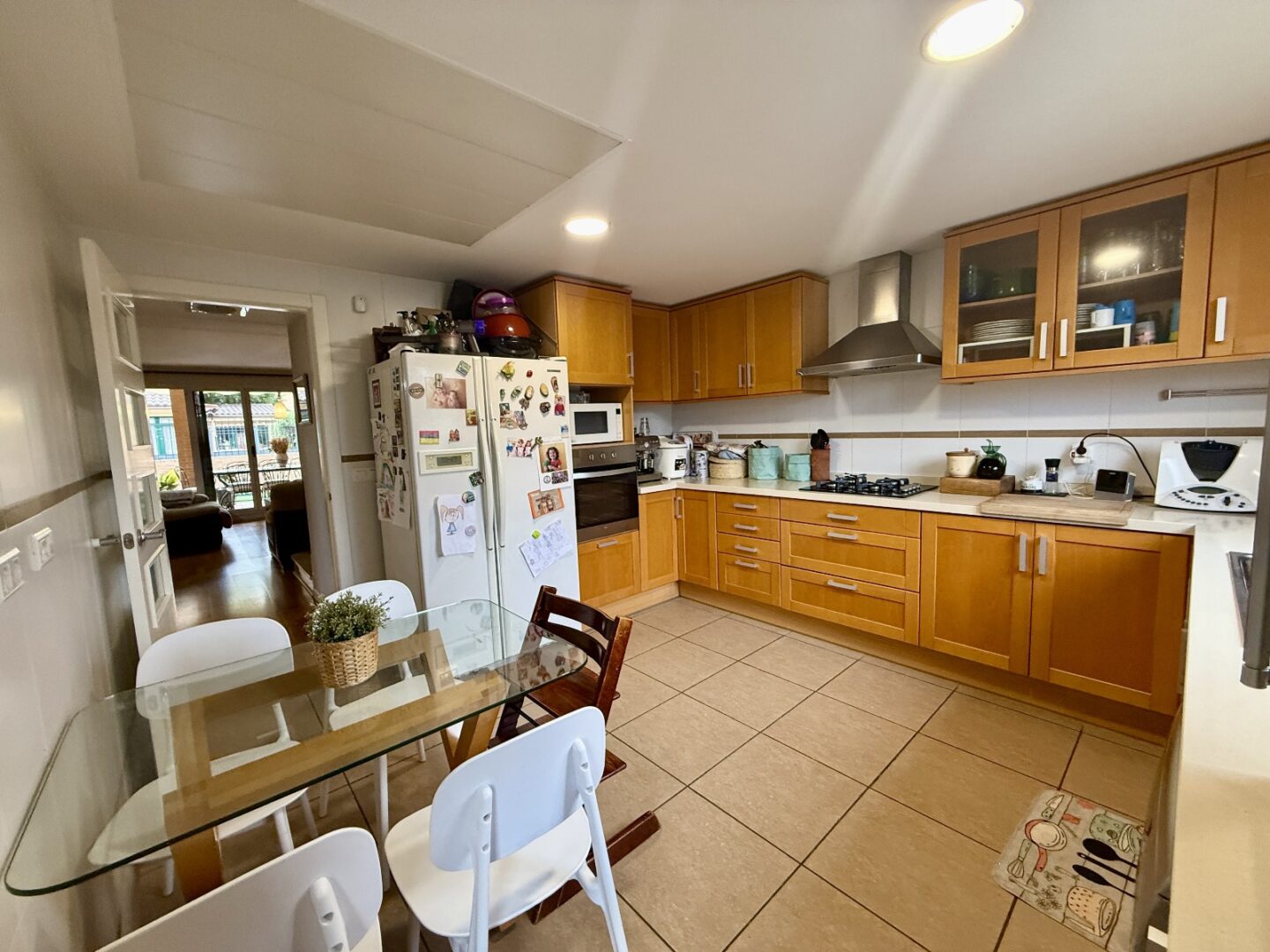 La casa se distribuye en tres plantas, ofreciendo una excelente distribución ya que en la planta primera dispone de una de las habitaciones y un aseo, así como un amplio salón con chimenea. Con cuatro dormitorios, uno de ellos con salida a otra de las terrazas y una bonita buhardilla con acceso a otra gran terraza con vistas. Dispone de un espacioso salón-comedor con salida directa a terraza, y una cocina funcional que da acceso a una galería, a través de la cual se sale a una pequeña zona donde hay esta la barbacoa. Su gran terraza permite disfrutar del aire libre en diferentes momentos del día.