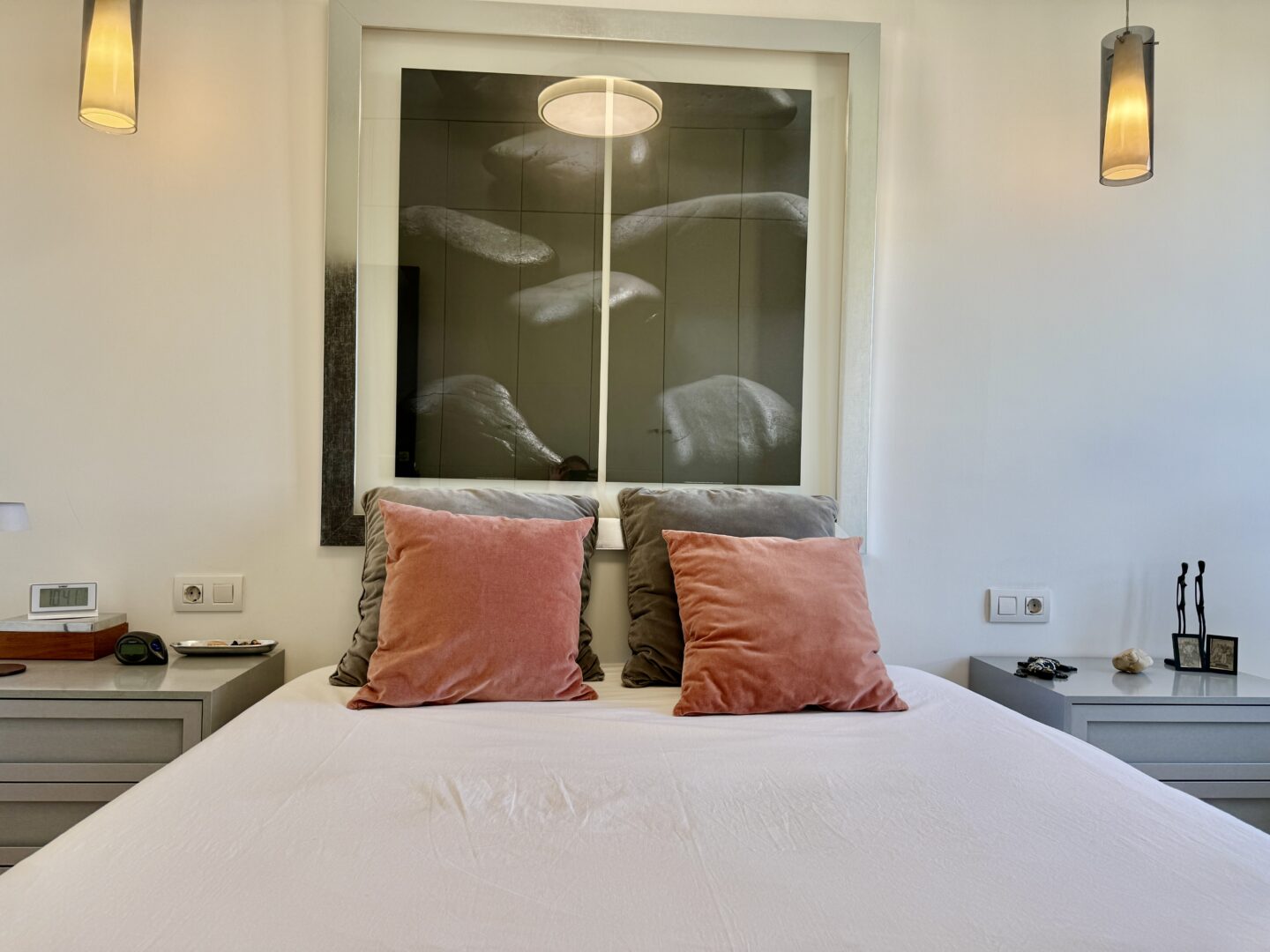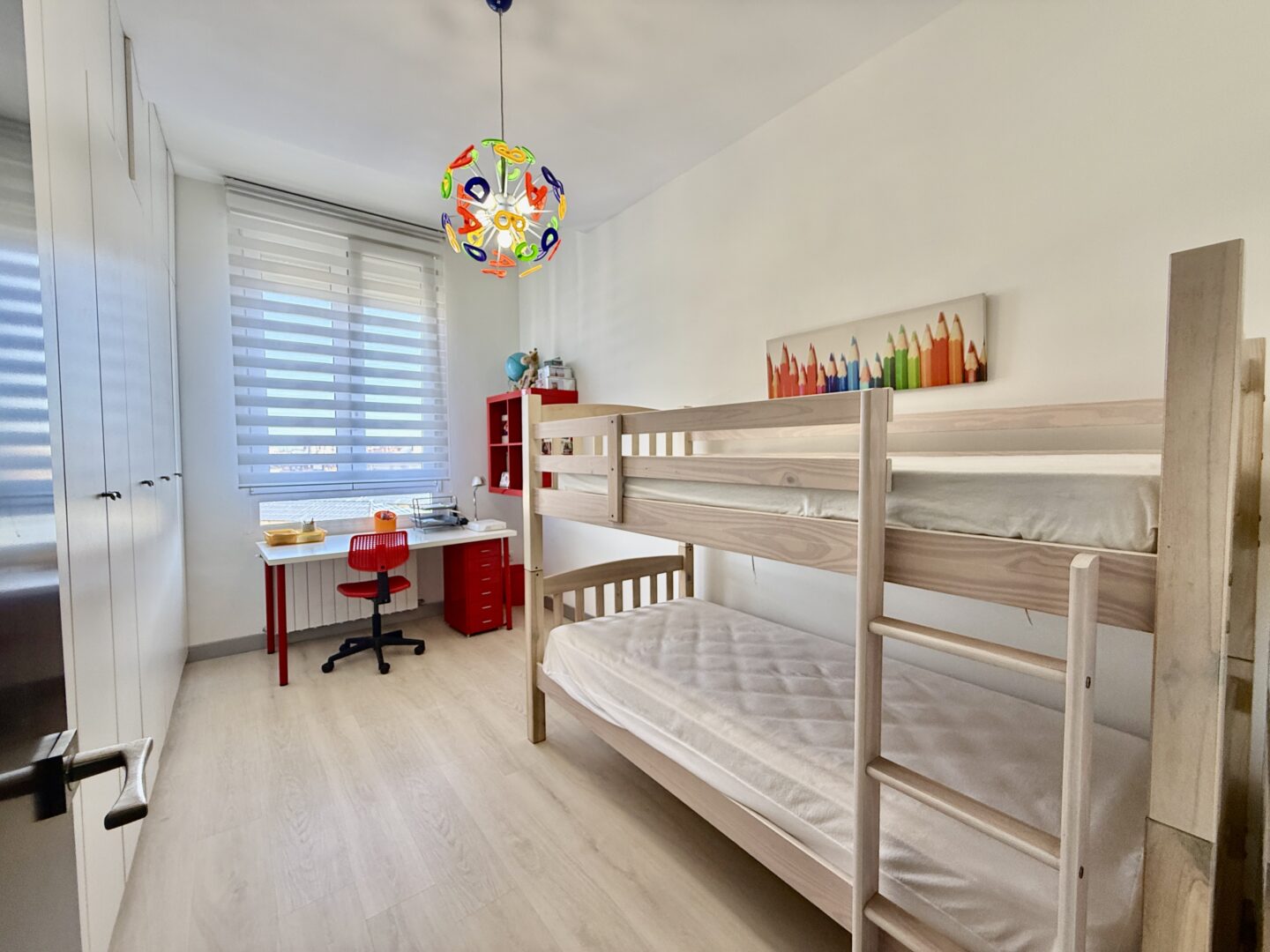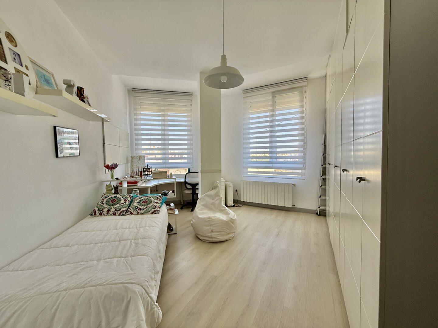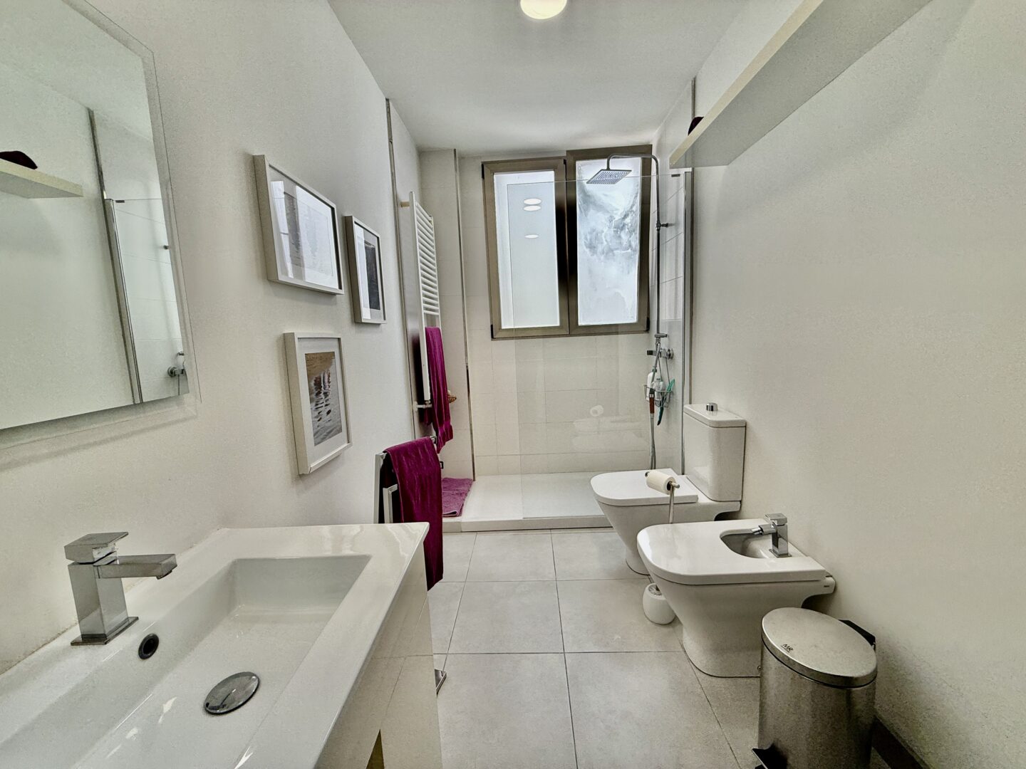 Suelos de tarima flotante, paredes lisas en blanco, puertas de madera oscura. Ventanas nuevas de climalit.
